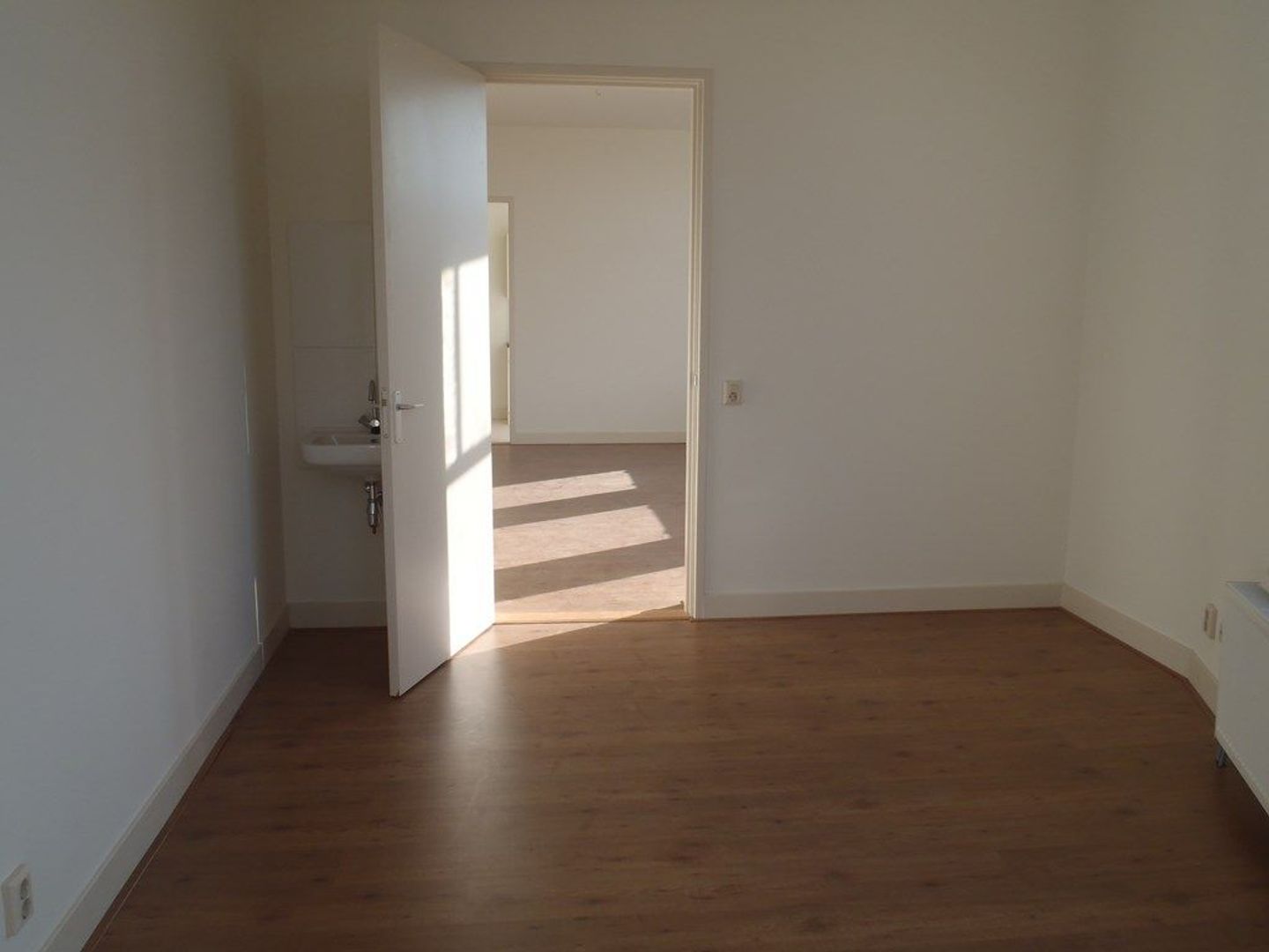 Via de gang toegang tot achtergedeelte, alwaar aparte badkamer van ca.: 2 m2 voorzien van hangtoilet, douche en wastafel. Aparte keuken aan de achterzijde van ca.: 6.4 voorzien van (inbouw)apparatuur (afzuigkap, kookplaat oven) en wasmachine aansluiting. Via de gang toegang tot ruime woonkamer van ca.: 26 m2 welke weer toegang bied tot Aparte slaapkamer van ca.: 12,2 m2 voorzien van wastafel.